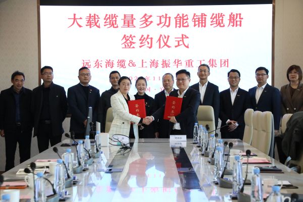2025年11月18日,上海振華重工(集團)股份有限公司黨委常委、副總裁張健率隊來訪遠東。遠東控股集團創始人、董事局主席蔣錫培,遠東控股集團黨委副書記、董事、電纜產業首席執行官陳靜等領導熱情接待,雙方圍繞深遠海開發與國際海工市場布局展開深度交流,并在江蘇宜興舉行大載纜量多功能鋪纜船EPC項目簽約儀式,標志著兩大企業在海工裝備與能源配套領域的戰略合作邁入實質性落地階段。遠東控股集團黨委委員、遠東海纜總經理徐靜代表遠東簽約。